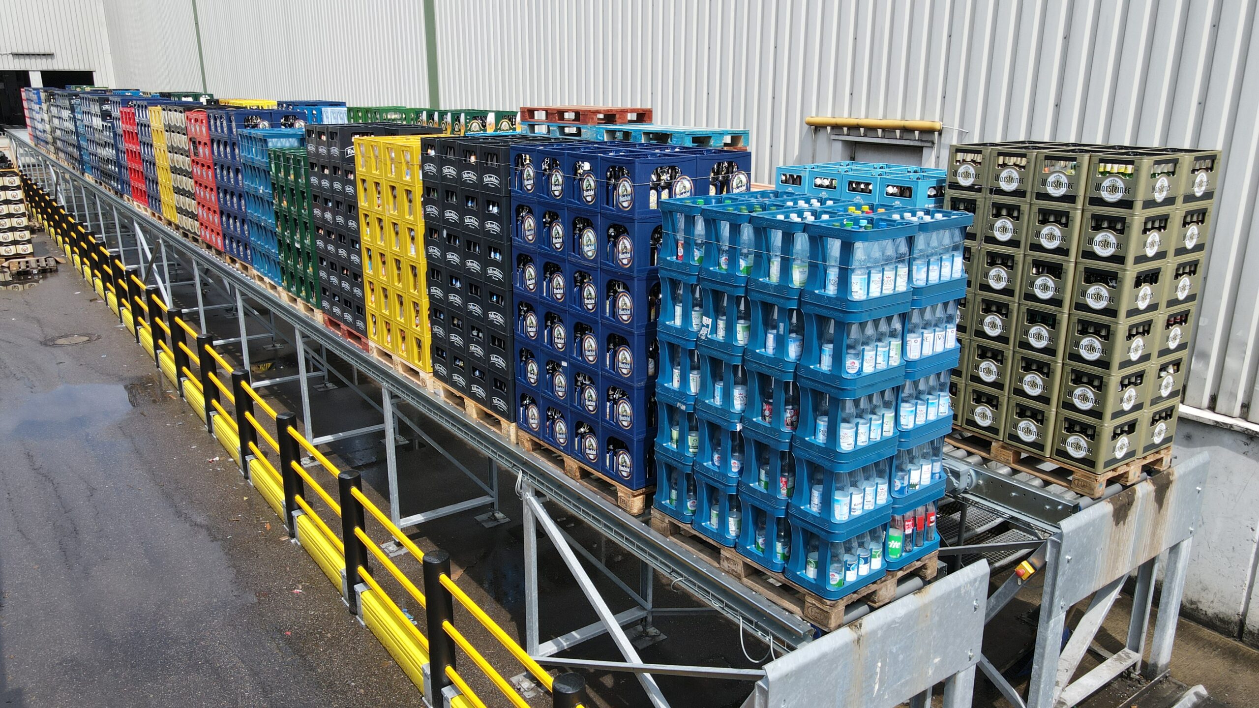 Der Vorteil liegt darin, dass man keine Pulkförderer mit Lichtschranken o.ä. benötigt, sondern durch das mech.Stauprinzip einen kostengünstigen und einfachen Weg hat, seine Paletten im TK-Lager aufzustauen.